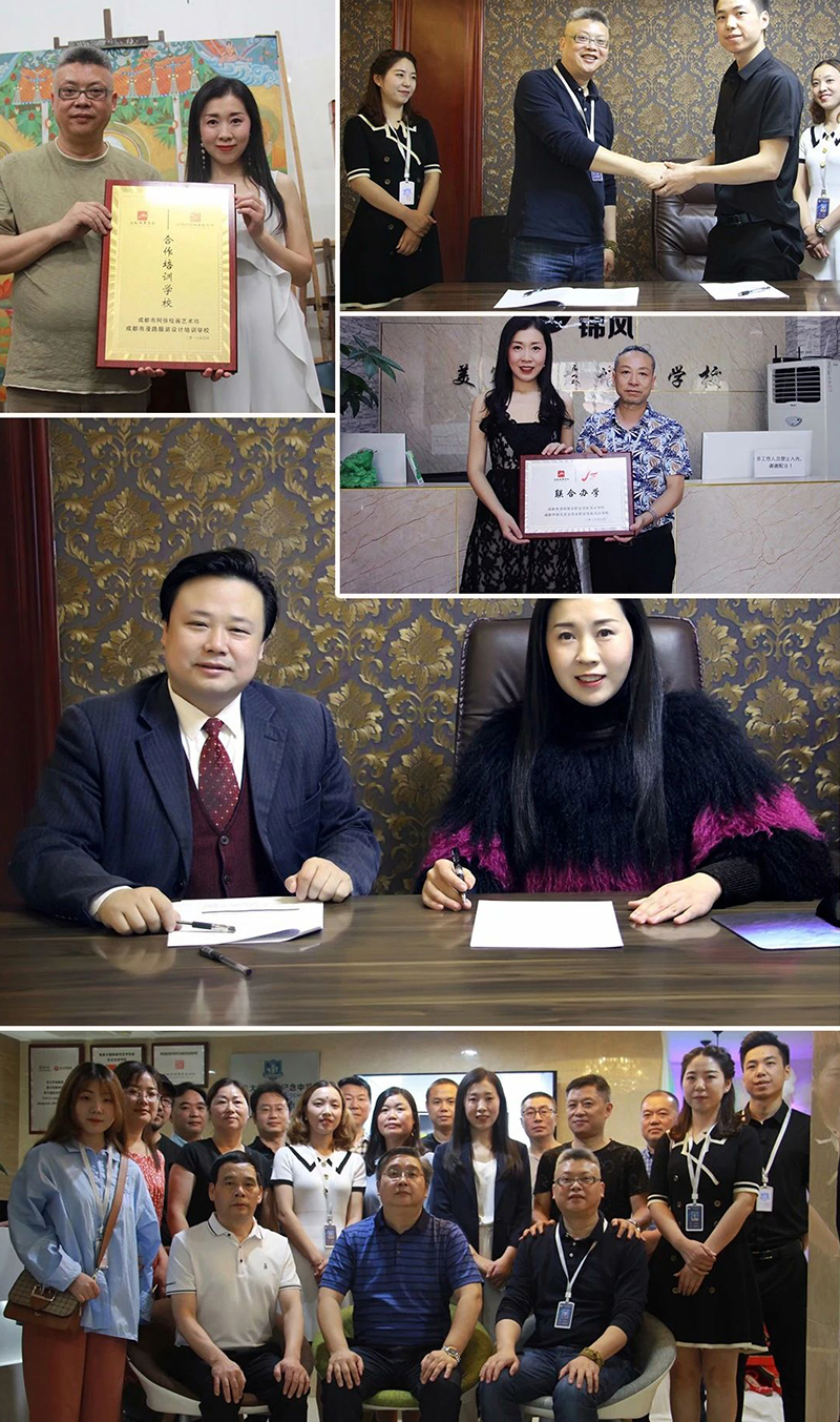 目前我校與”成都電視廣播大學(xué)、四川科力職業(yè)學(xué)院、加拿大白求恩紀(jì)念中學(xué)、四川省服裝行業(yè)協(xié)會、東方外院教育、成都西部國際商貿(mào)城、成都億家天下面料紡織市場、廣州菠蘿紡織有限公司、蘭花草國際、四川莫范克特商貿(mào)有限公司、順華服裝公司、博圓服飾公司、俊哲服飾有限公司、歐亞姝服飾公司、羅馬狄奧男裝“等多家高校、服裝企業(yè)達(dá)成合作關(guān)系,學(xué)員不僅能全面、規(guī)范地掌握服裝設(shè)計的理論知識和實踐技能,而且還擁有深入服裝企業(yè)參觀、學(xué)習(xí)、實習(xí)、就業(yè)等機(jī)會,不僅為學(xué)員開拓時尚視野;掌握時尚前沿提供了窗口,也為學(xué)員職業(yè)生涯規(guī)劃及事業(yè)發(fā)展奠定了堅實的基礎(chǔ)。