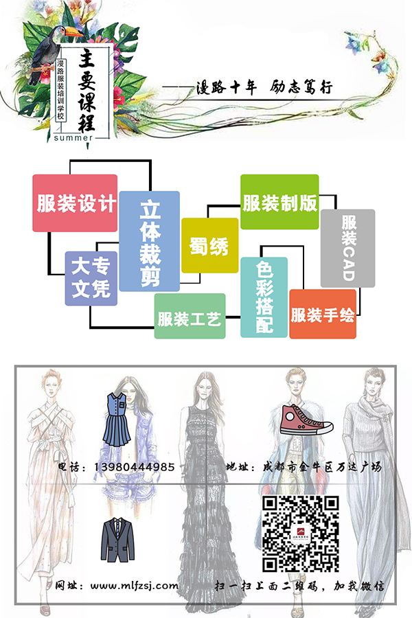 保障局注冊備案的一所知名服裝培訓學校。歷經(jīng)數(shù)十年實踐教學經(jīng)驗,已經(jīng)發(fā)展成西南地區(qū)大的專業(yè)全的集服裝設計、培訓、技術研發(fā)、就業(yè)創(chuàng)業(yè)指導等大型培訓學校。