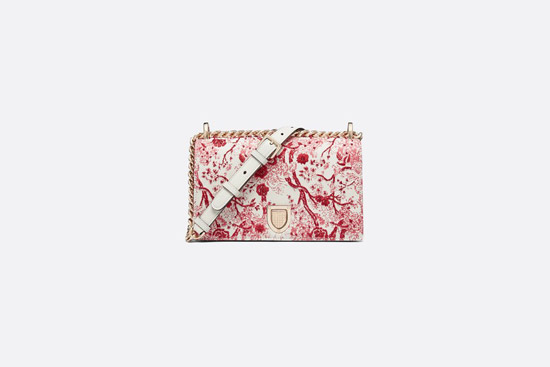紅色白底的約依印花圖案,乍一看有種水墨畫(huà)的感覺(jué)?;旧洗蠡鸬膸卓畎琇ADY DIOR,馬鞍包,DIOR BOOK托特包和DIORAMA,都出了限量款。